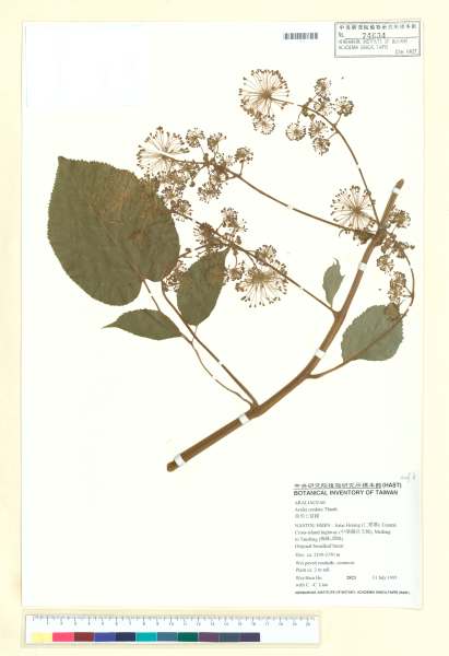 - 中文種名:Aralia cordata Thunb. subsp. taiwaniana (Y. C. Liu & F. Y. L