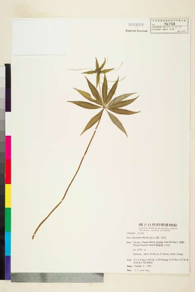 - 學名:Paris lanceolata Hayata