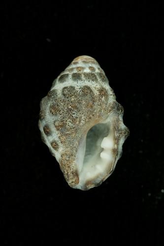 - 形態特徵:殼近菱形,灰白色、淡褐色,密佈深褐色的瘤突,體層略膨脹。殼口近半圓形,深褐色,外唇具有明顯的齒狀突起。口蓋角質,褐色。