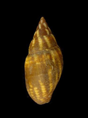 - 形態特徵:殼紡錘狀。殼表紅褐色,具黃色縱帶或色斑,弱螺紋。螺頂高。殼口淡紫色,軸唇具三條斜向縐摺。