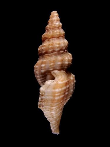 - 形態特徵:Shell, light brown, biconic with anterior canal, moderately long; 11 mature whorls, no subsutural cord; sculpture of subangulate axials from concave sulcus to suture and to bottom, overriding spiral cords forming transverse nodules on axials; 10 ribs on p