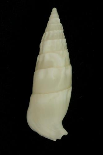 - 形態特徵:殼形修長,各螺層上部有縱肋,貝殼米黃色,殼口白色而略微狹窄,水管溝反捲,殼長約6公分