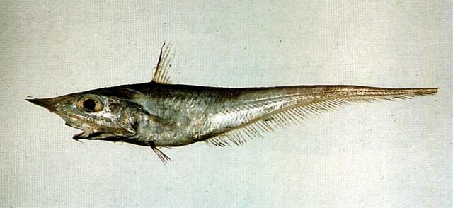 - 型態特徵:體延長而側扁,尾長如帶,愈往後愈尖細。鼻骨前側邊緣不完全被骨支托。吻部腹面裸出,有許多細小皮辮分佈。兩背鰭間距長,第二背鰭起點在臀鰭起點之後。 發光器呈長桿狀,自肛門沿伸至喉峽部,喉峽部端之發光穴覆有鱗片。體被弱櫛鱗,棘刺短小呈三角型,不規則鬆散排列。體側散佈有許多明顯的雲狀斑紋;喉部與鰓被架膜散佈許多小點;口腔與鰓腔白色;第一背鰭暗色。