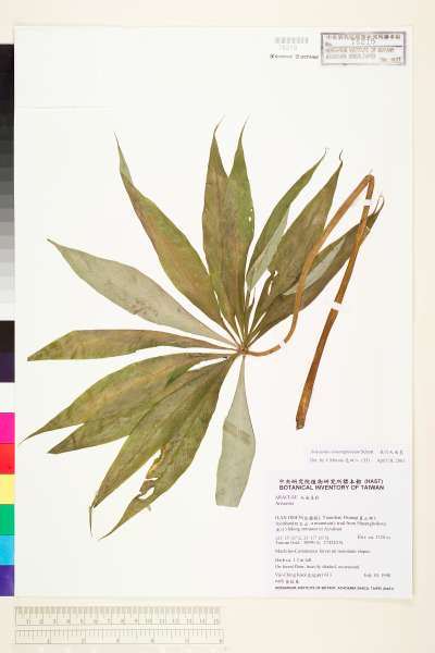 - 中文種名:長行天南星(雷公統、長尾葉天南星)