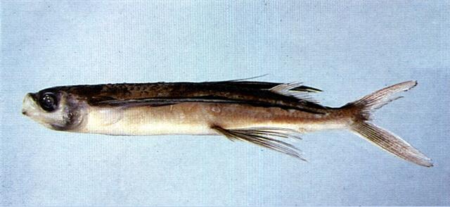 - 型態特徵:體延長,略側扁,較一般飛魚為細。體長為頭長之4.3-4.9倍,為體高之5.8-6.7倍,頭長短於背鰭起點至尾鰭上葉起點之距離。吻鈍短。口開於前端,上下頜約略等長;兩頜有齒,齒細小;顎骨無齒。鼻孔兩對,大形,近於眼前。鰓裂寬,鰓膜在喉峽部游離;鰓耙數7-9 +17-22 = 24-31。鰾大,向後延長;腸簡單,無幽門及盲囊。體被圓鱗,大而薄,易脫落;頭部多少被鱗;側線甚低,近腹緣,在胸部不分枝,具鱗50-54;背前鱗28-32;側線上鱗6。背鰭無棘,位於體之後部,具軟條10-12,鰭膜上無黑色斑;臀鰭起點在背鰭第3軟條基底之前,具軟條11-12;胸鰭末端到尾鰭上葉起點,第1及2鰭條不分歧,一致呈暗色,僅鰭下緣具淡色帶;腹鰭長,末端達臀鰭基底,其基底至尾鰭中央鰭條末端之距離略等於至眼中央之距離,一致呈淡色;尾鰭發達,深開叉,下葉較長。脊椎骨數45-46。幼魚無鬚。