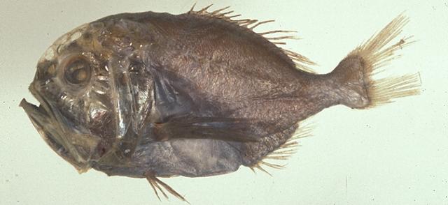 - 型態特徵:體高而側扁,呈卵圓形。頭大而高,具大型的黏液腔,外被以薄膜。吻鈍短。眼大;眼眶下緣及後緣具若干條長短不一的骨脊。口前位,斜裂,上頜骨末端達眼後緣下方,下頜骨略突出,在縫合處具一小突起;上下頜細小,絨毛狀;鋤骨及顎骨具齒。鰓耙細長。鰓蓋骨後緣有一短棘,前鰓蓋骨後下緣具另一強棘。體被小櫛鱗,頭部無鱗;側線約略平直,鱗片較體側其他部份鱗片大約2倍,其上有一棘凸;腹鰭與臀鰭間之腹中線上具10-15個稜鱗。肛門緊接於臀鰭起點之前。背鰭單一,無缺刻,硬棘數IV ,最末棘最長,軟條數 14-15,皆較硬棘長;臀鰭第一硬棘很小,具III +9-10鰭條;尾鰭深叉,上下葉緣尖形。體黑褐色,口腔及鰓腔黑色。除胸鰭黑色外,各鰭淡褐色。