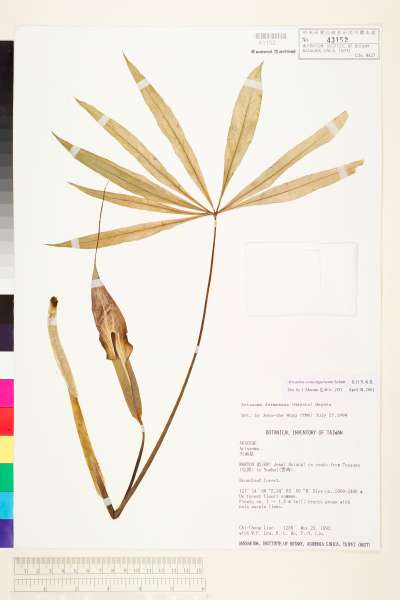 - 中文種名:長行天南星(雷公統、長尾葉天南星)