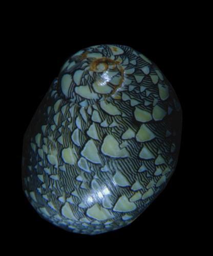 - 形態特徵:螺塔低殼頂亦十分低平,殼表十分平滑且具有許多顏色及斑紋,殼表花紋變化十分大。殼口外緣無齒,內唇滑層發達且平坦,內唇殼緣有二個較寬的顆粒狀突起,兩顆粒狀突起間有數個小型齒狀突起。口蓋平滑,顏色為黑色。