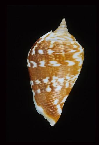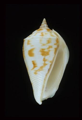 - 形態特徵:殼形:殼普通厚且平滑,螺塔高,肩部有排列緊密的小瘤,膨脹肋不發達。體層有發達的螺肋,肩部可能有一個到數個小瘤。外唇厚,稍微外翻,齒狀襞發達且伸長至邊緣。軸唇滑層厚且平滑,但兩端有不發達的齒狀襞。後水管長且延伸至螺塔。Stromboid notch不明顯。 殼色:深褐色或淺褐色底,有4-6條白色螺旋帶,尚有白色縱紋,殼口及軸唇白色。 大小:中型,29-75 mm 。(47.1×25.5 mm)