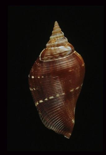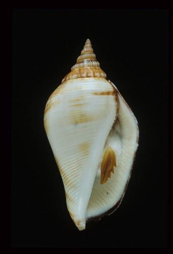 - 形態特徵:殼形:修長型的殼,螺層有縱肋及膨脹肋,肩部角狀有小結節。體層下方有螺紋,體層光滑。外唇向外翻出,扁平。後水管向後延伸超過第一條縫合線。軸唇滑層厚且平滑,前水管反曲。 殼色:棕色底而有幾條白色帶紋,殼口及軸唇白色。 大小:中型,25-65 mm 。(51.0×25.0 mm)