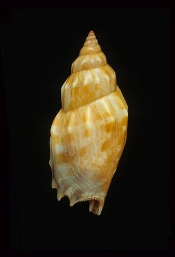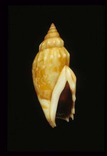 - 形態特徵:殼形:修長的殼,外表光滑,殼質堅固,螺塔尖,且肩部圓滑。螺層和上半部的體層有明顯的縱褶,尤其是最後兩層較大。外唇厚而外翻,有3-4隻齒狀突出,外唇內齒狀襞發達。軸唇厚而平滑,有滑層,其下方有少數齒狀突。 殼色:乳白色底有橙色及棕色的條紋、點和斑塊;殼軸白色,殼口黑色上有白色的齒狀襞。 大小:中小型,26-60 mm。(36.2×15.2 mm)