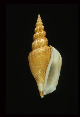 - 形態特徵:殼形:修長的殼,螺塔高。螺層上縱肋發達且有螺紋,肩部完整,縫線附近有凹陷。體層有縱褶,前端有螺紋。殼口有齒狀襞,外層外翻,外緣加厚。軸唇有厚滑層。後水管發達延伸至螺塔。 殼色:棕橙而有白色帶狀條紋,殼口及軸唇白色。 大小:中型,35-100 mm。(76.2× 29.5 mm)