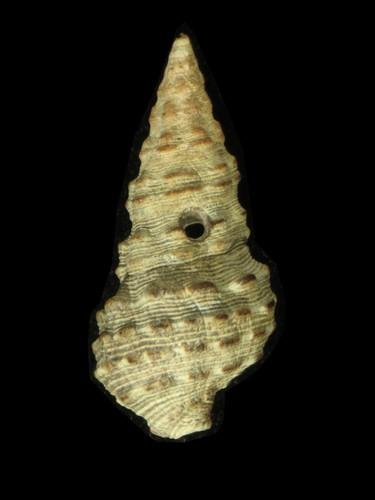 - 形態特徵:殼呈長錐形,殼頂尖銳,體螺層膨大。殼色褐色,上有不連續螺肋規則排列於殼表,螺肋間有白色細紋。殼口深褐色,外唇波浪狀。水管白色。口蓋圓形,角質,具螺旋紋。