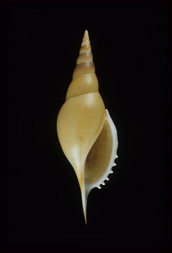 - 形態特徵:殼形:殼薄且輕,殼表平滑,螺塔高且尖銳,體層很大,有發育不良的螺紋。殼口呈半月型,有3-7隻短足。軸唇滑層薄,前水管短直,後水管短曲且裸露。 殼色:淺棕色,有白斑,外唇外緣褐色,前水管緣黑色,殼口內淡紫色,邊為白色,軸唇白色。 大小:中大型,110-180 mm。 (123.9×38.3 mm)