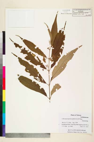 - 學名:Callicarpa hypoleucophylla W. F. Lin & I. L. Wang